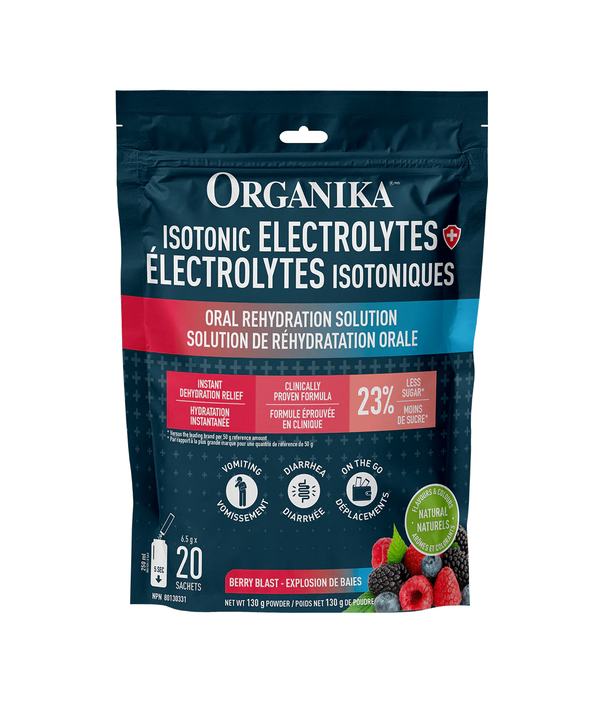 Organika®'s Replenish Electrolytes (Isotonic) is an Oral Rehydration Solution formulated based on the World Health Organization's rapid rehydration formula, making it much more effective for quick rehydration than standard daily electrolytes. It is particularly suitable for relieving dehydration after vomiting or diarrhea.