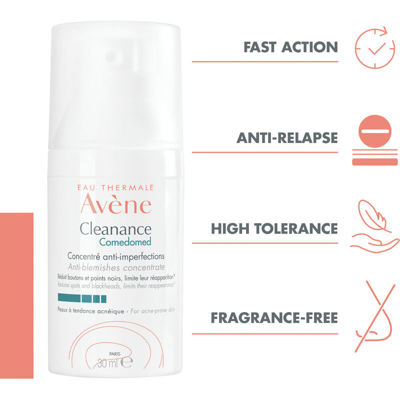 Avène Cleanance Comedomed Anti-Blemish Concentrate has shown proven clinical effectiveness from seven days*, fights the appearance of spots from the root and prevents them from reappearing.