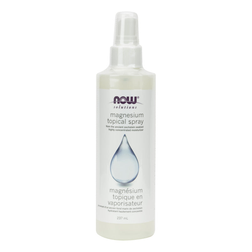 NOW® Solutions Magnesium Topical Spray is a pure, highly concentrated, topical magnesium chloride solution sourced from ancient seabeds. This Magnesium Spray is easily applied and non-greasy. Approximately 4 sprays equal 66 mg of elemental magnesium.